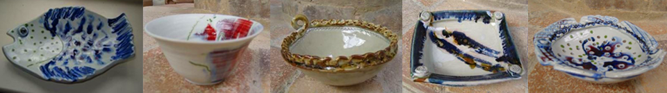 They make lively, strong, functional pots . Madeleine decorates most of the work with bold Chinese brush strokes using glazes ranging from deep copper reds and mauves to exciting blues and greens. she also loves handbuilding and produces large slab work. The clays used are stoneware and porcelain. All their work is fired by gas in a reduction atmosphere.